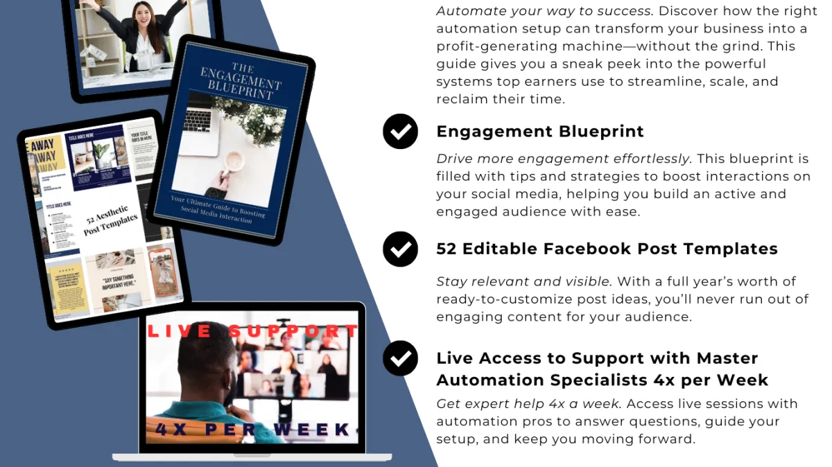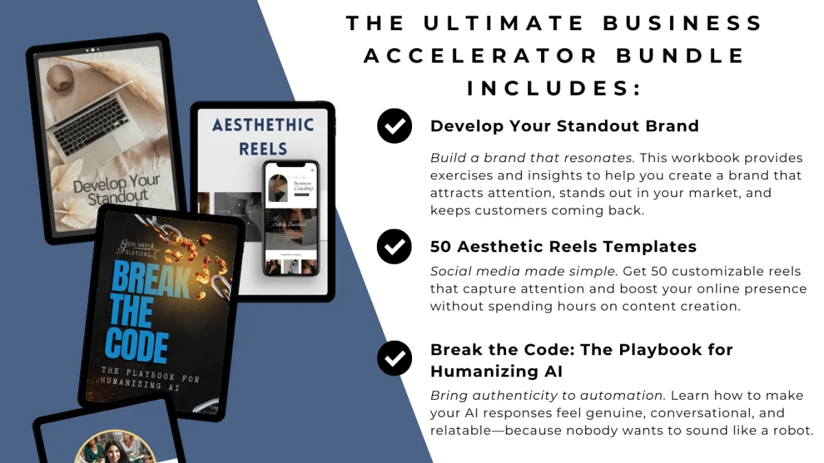 Now imagine a different reality. One where you wake up excited to check your phone because you know it's filled with new leads and sales that came in overnight. Where you have the time and mental space to create content that truly resonates with your audience. Where you can take a day off – or even a vacation without worrying that your business will crumble in your absence.