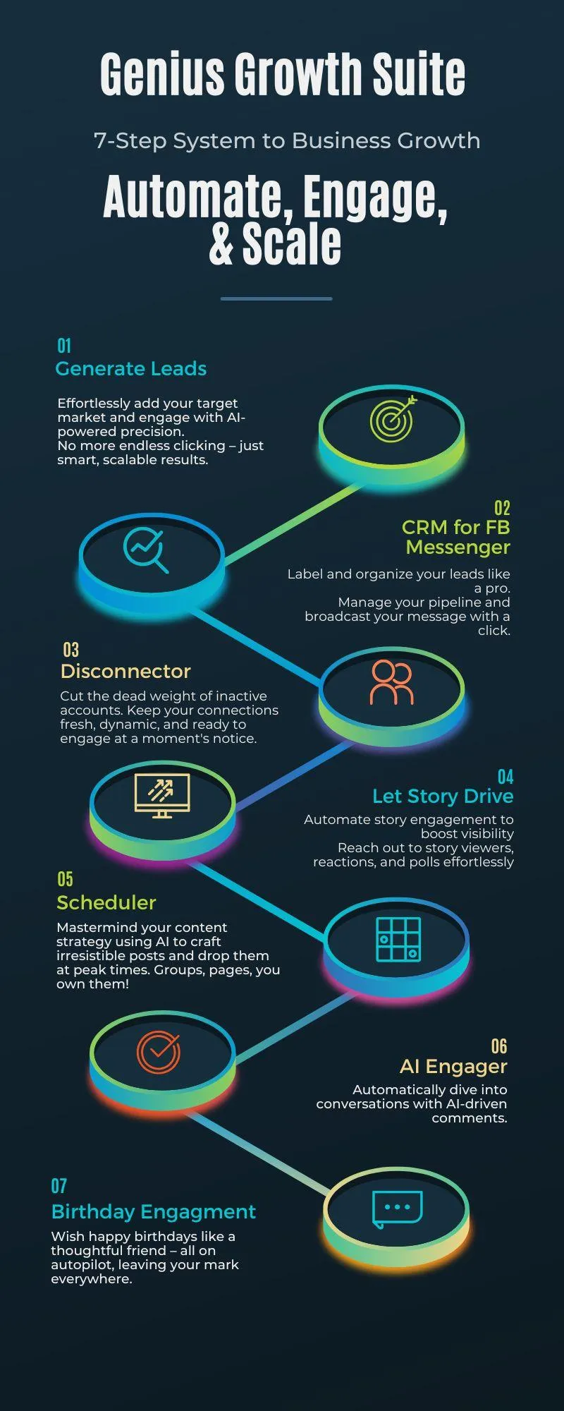 Remember, the Genius Growth Suite isn't just about automating tasks. It's about transforming your entire approach to business. It's about freeing you from the mundane so you can focus on what truly matters – creating value, building relationships, and living life on your own terms.